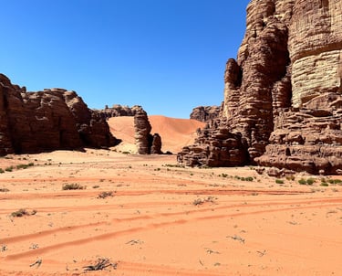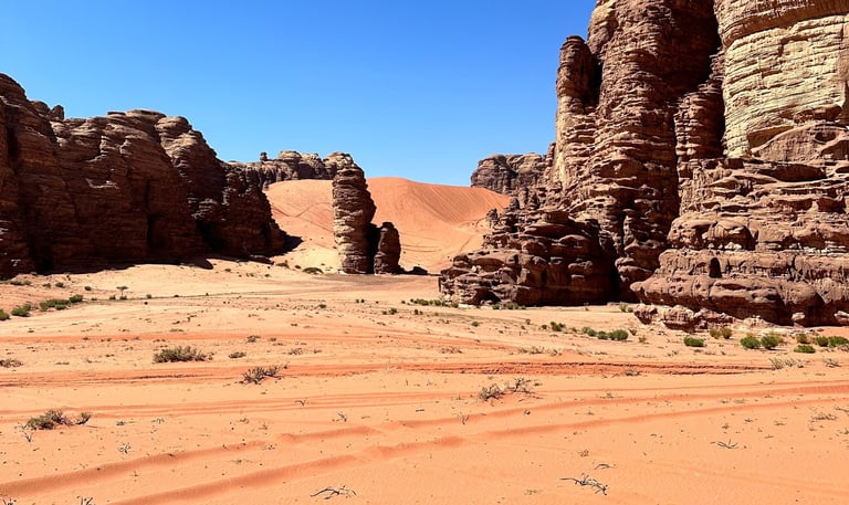 Untouched Desert Beauty – Vast sand dunes and striking rock formations in the heart of the Tabuk region